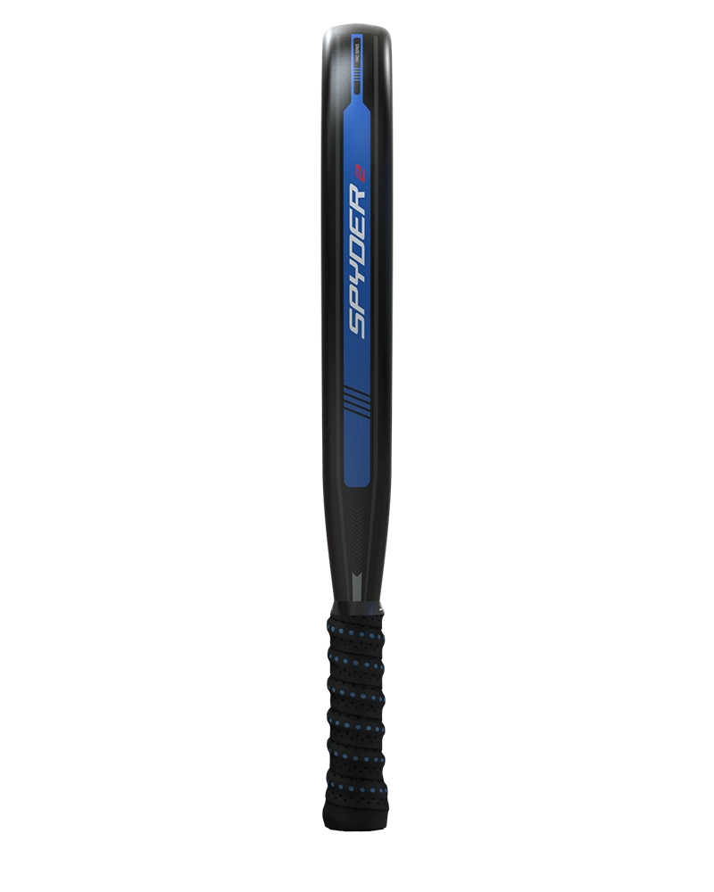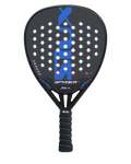 La nueva pala de pádel Spyder 2 Revolution ATTK 3K en color azul, una de las más potentes de la Serie pro. Combina un molde diamante con el balance en la parte superior, lo que incremente su potencia.